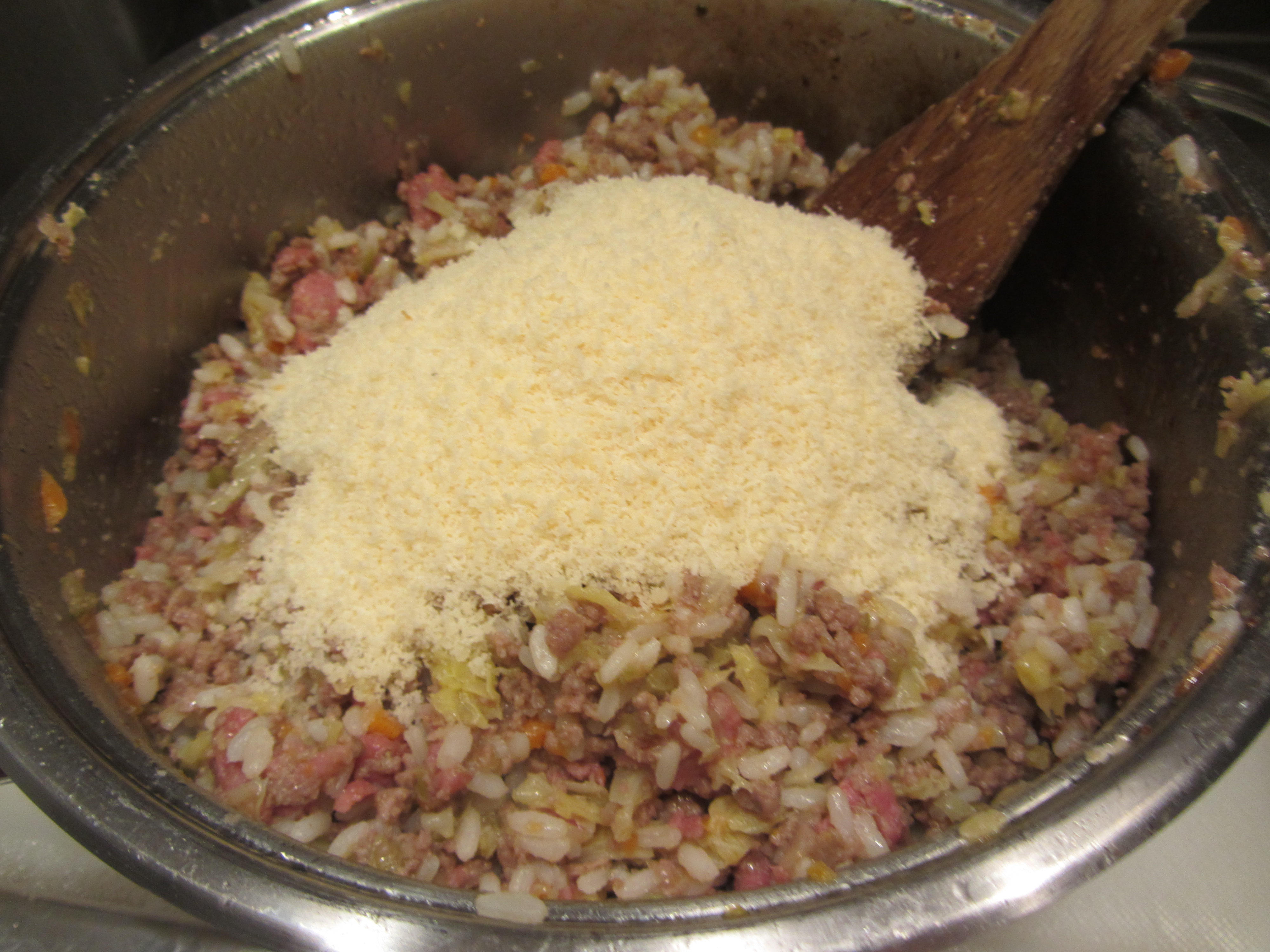 Sbattete l’uovo ed aggiungetelo al ripieno.