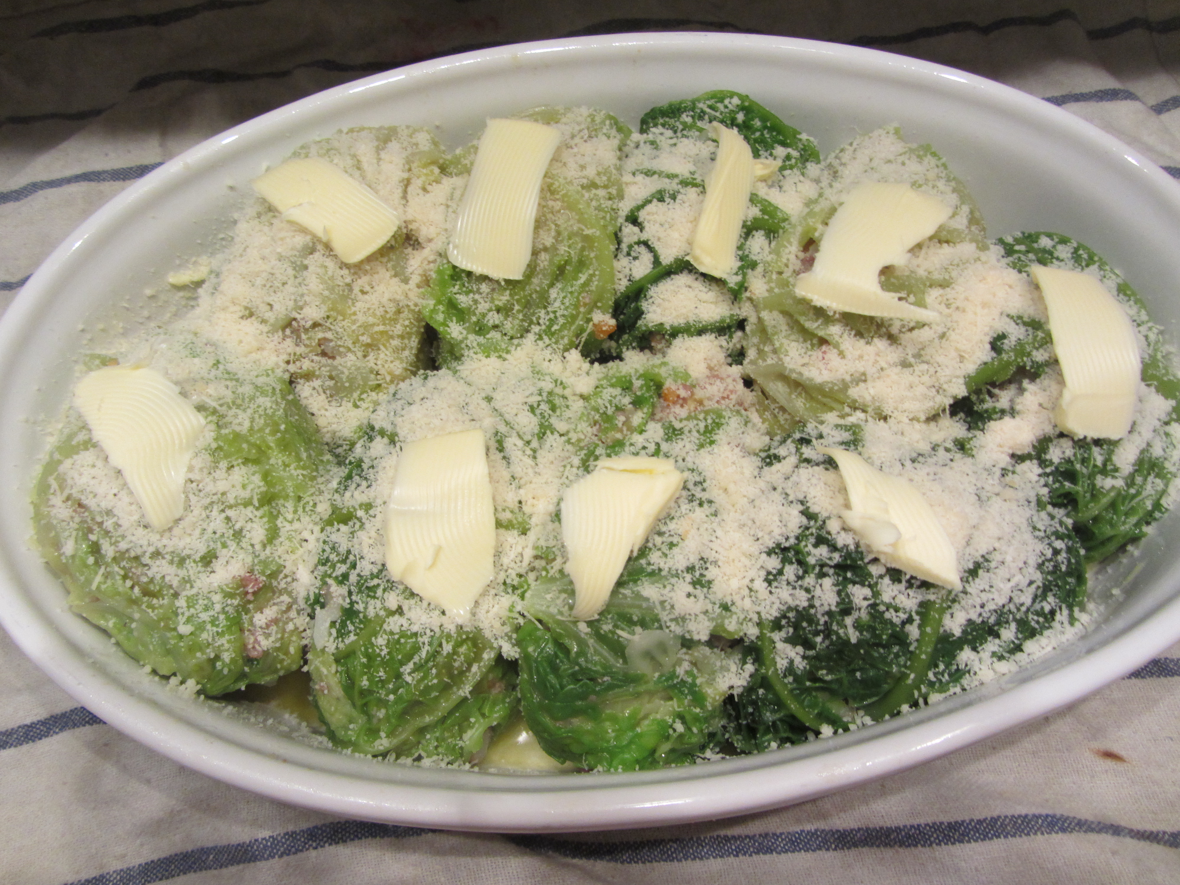Richiudete delicatamente e strizzate delicatamente in maniera da eliminare eventuale acqua trattenuta dalla foglia, e trasferite nella pirofila col burro fuso.