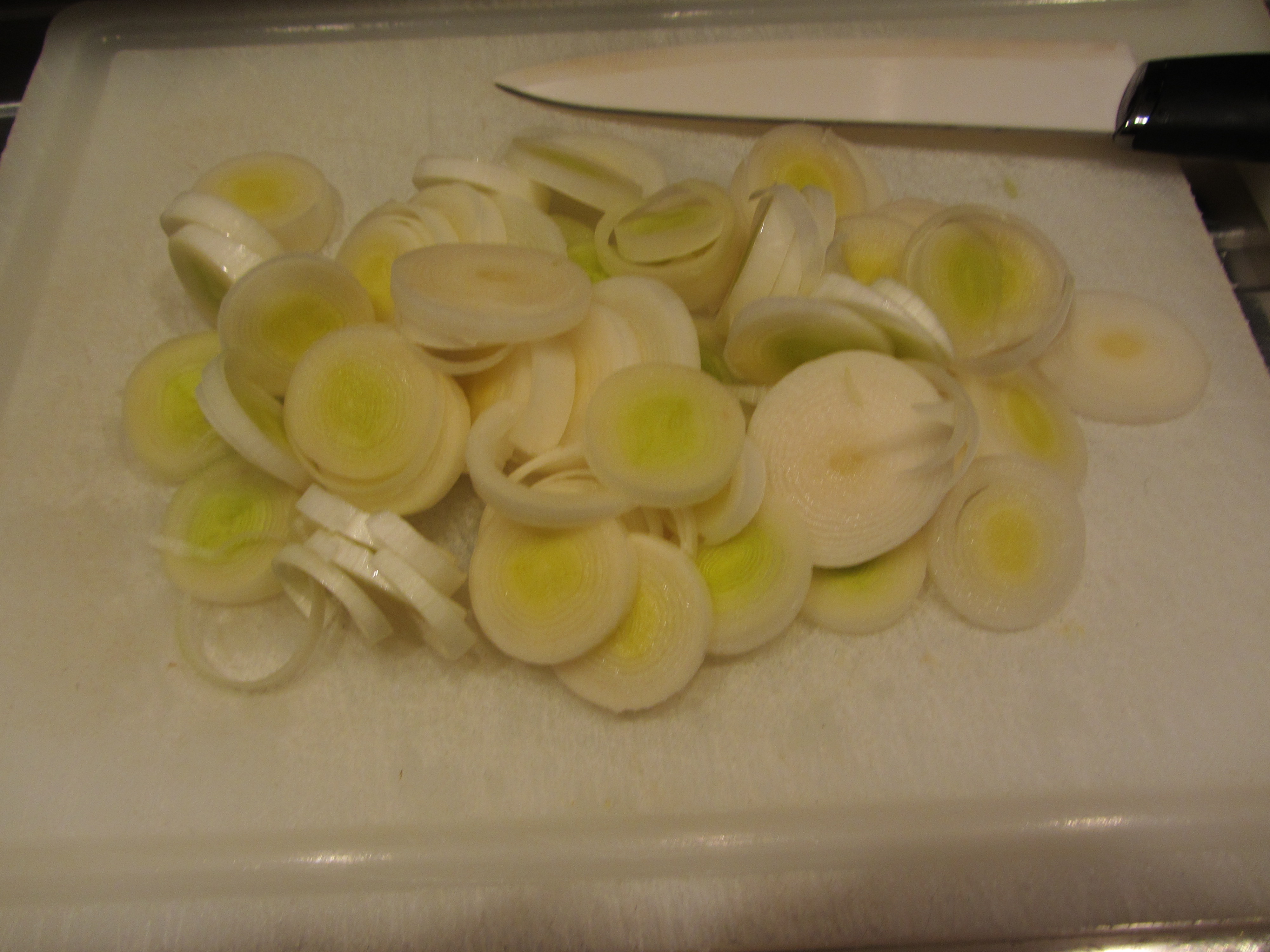 Ponete le rondelle di porro in una padella con poco olio evo e del brodo granulare e procedete a fiamma bassa sino a farle appassire.