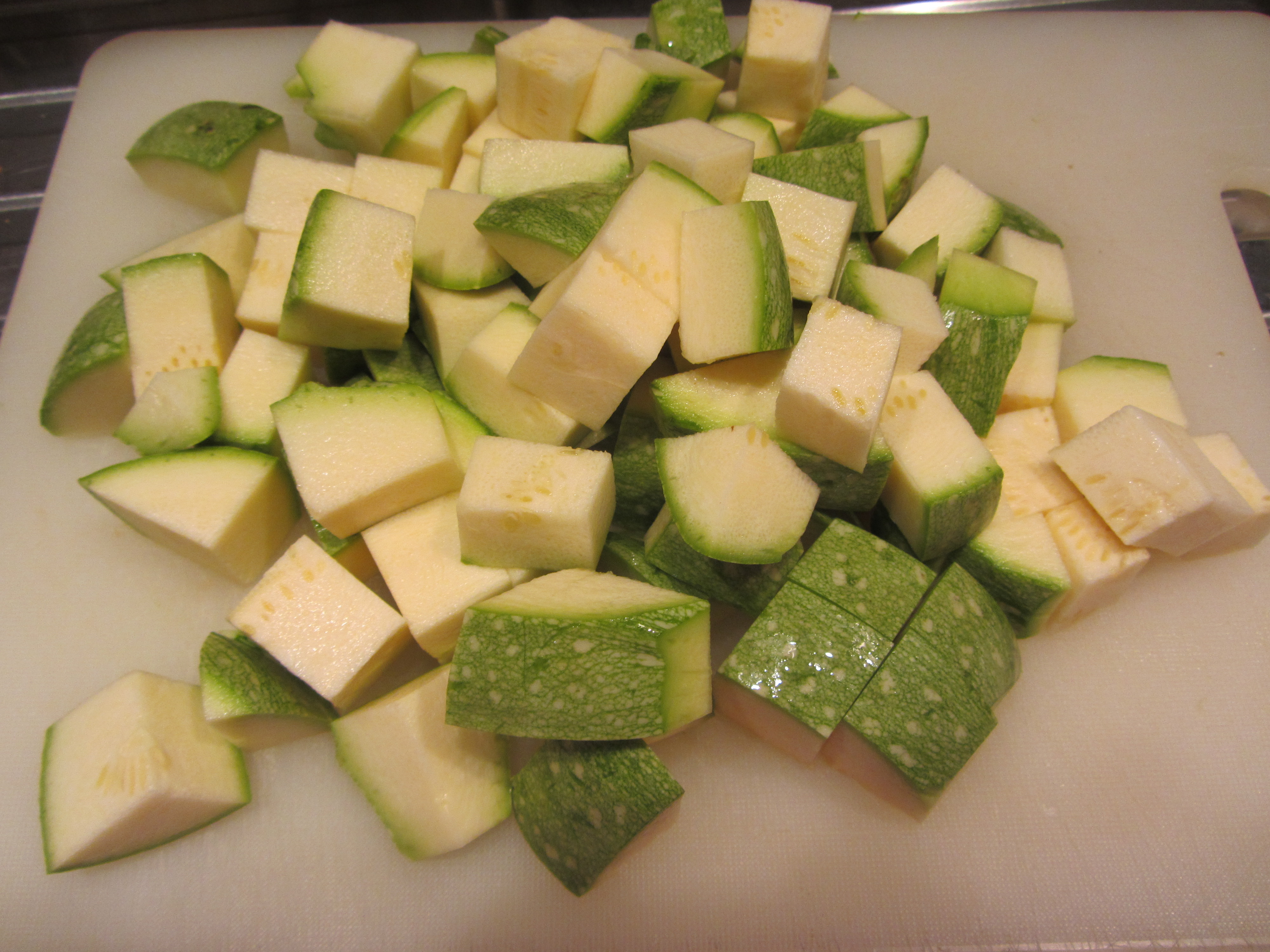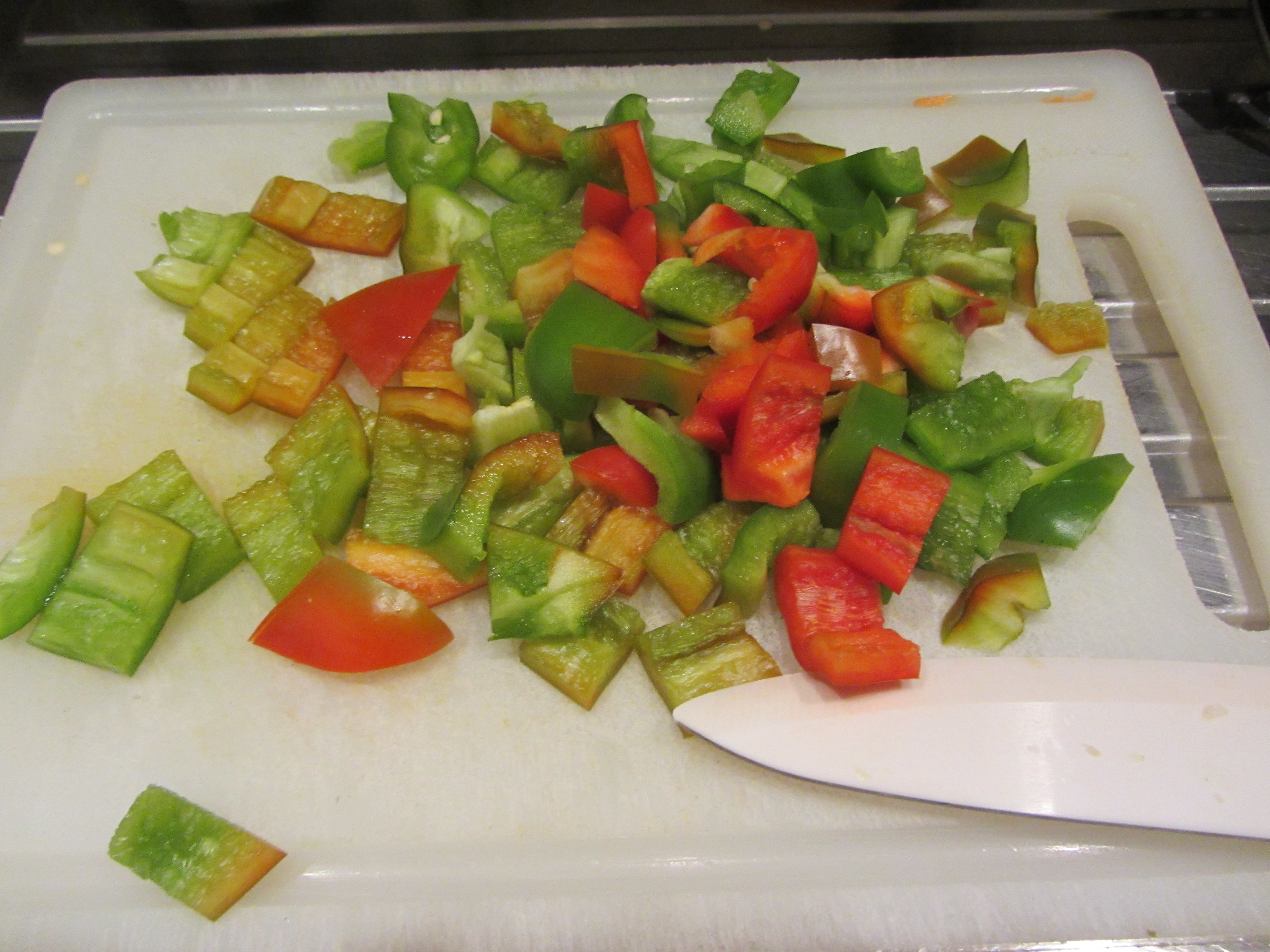 Riducete il peperone a quadretti privandolo del picciolo e dei semi.