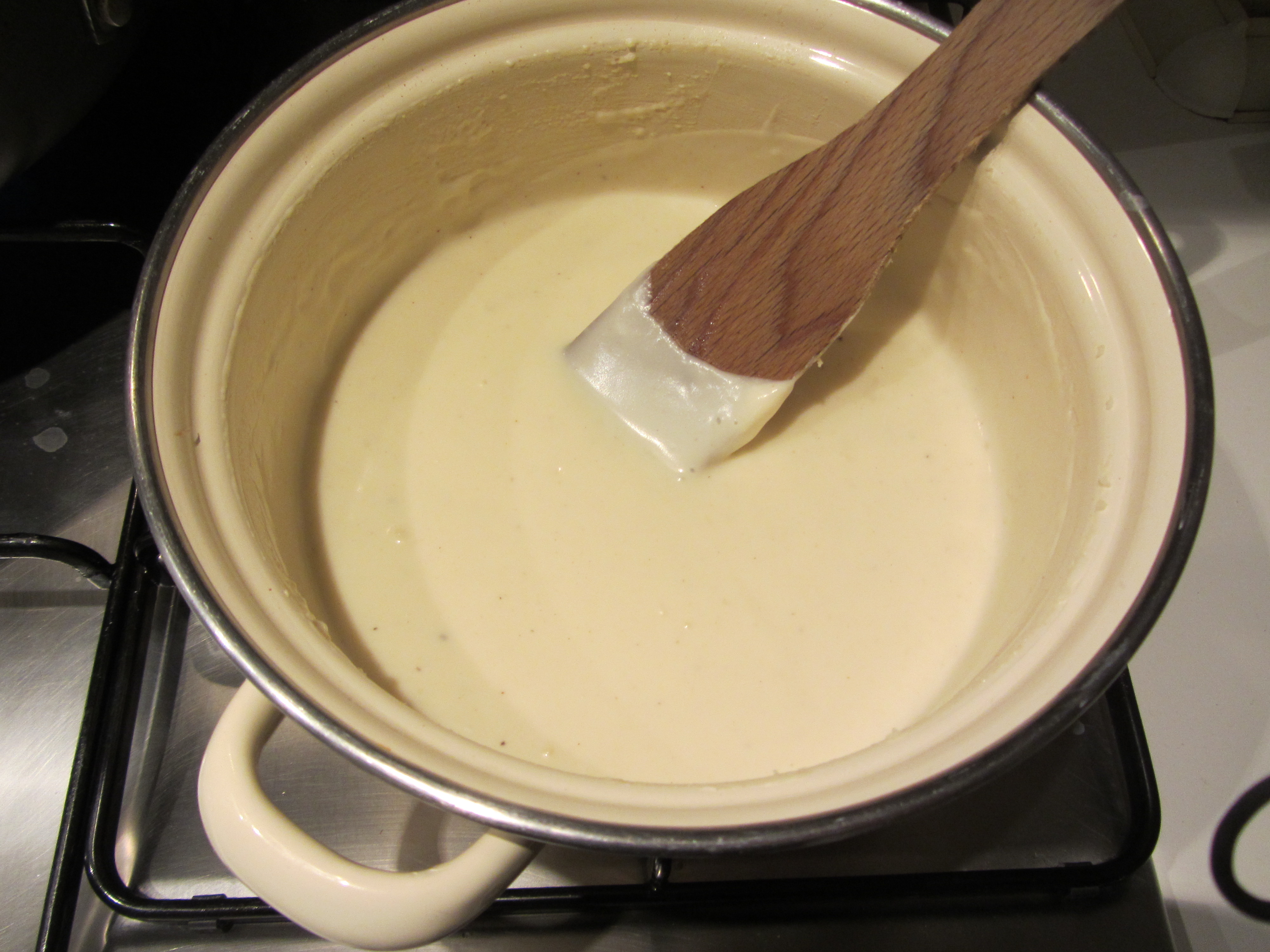 Una volta incorporato tutto il latte, contunuate la cottura sino ad addensare la salsa. Deve leggermente sobollire per al massimo 10 minuti.