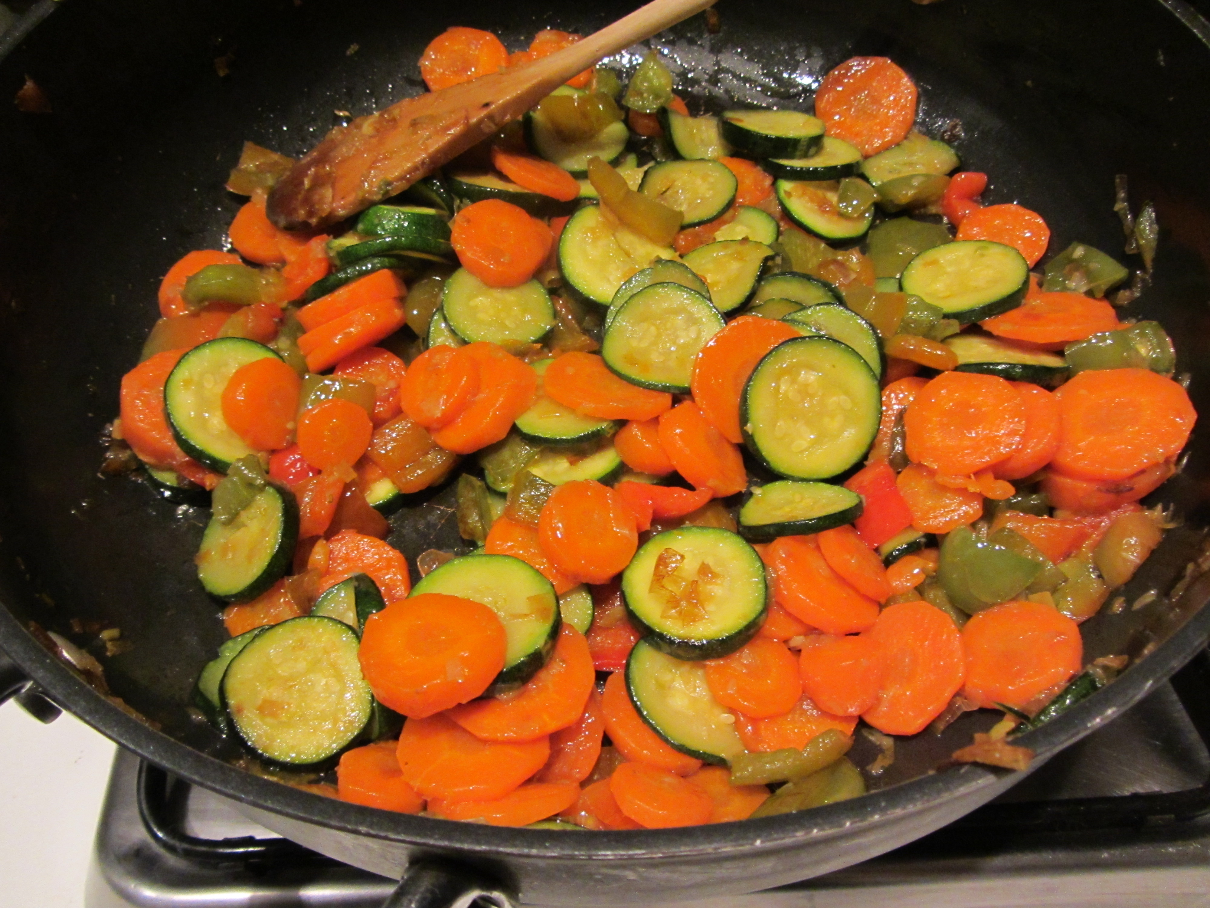 Aggiungere le carote e continuare la cottura, eventualmente salando leggermente.