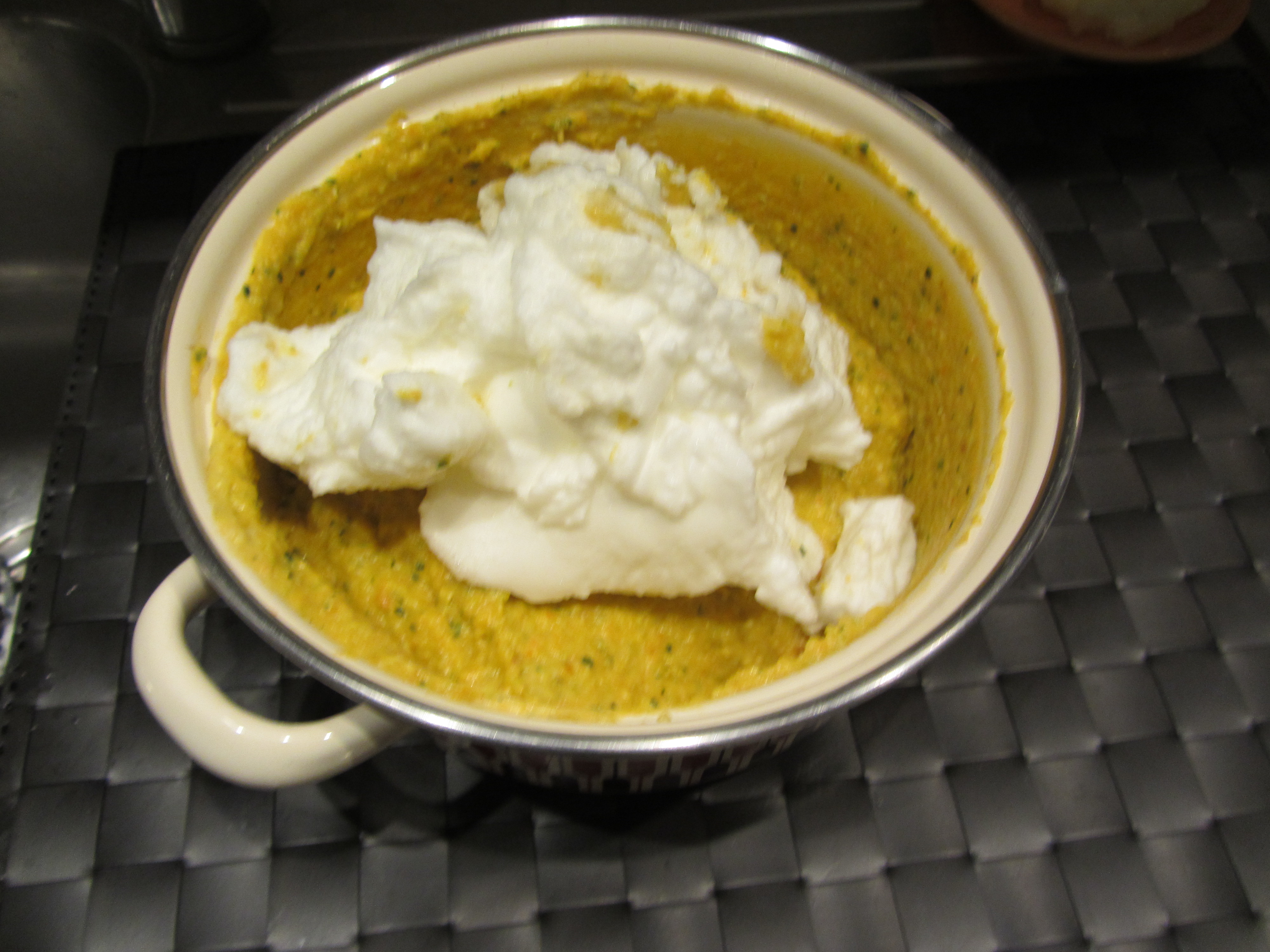 Una volta tiepida incorporatela al composto frullato di verdure.