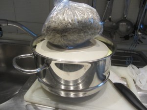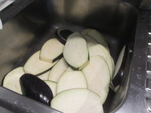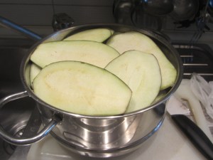 Porre un peso sopra le melanzane e lasciare almeno 2 ore a perdere i succhi.