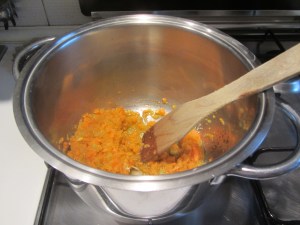 Rosolare il soffritto con olio di oliva extravergine e salare.