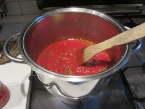 Portare a bollore, quindi abbassare la fiamma e fare restringere la massimo.