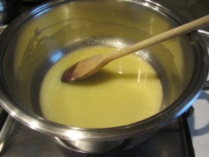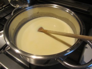 A fiamma bassissima e mescolando di continuo fare addensare la besciamella.
