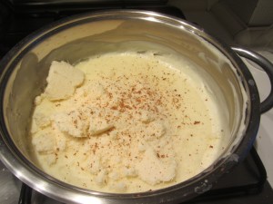 Aggiungere alla besciamella calda il formaggio e la noce moscata, mescolare sino a incorporare bene il formaggio.